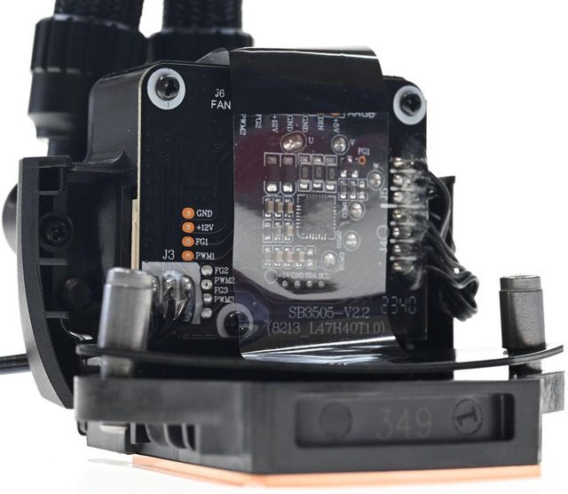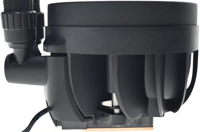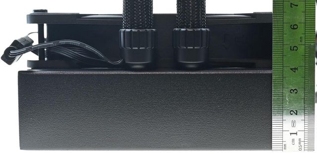 水冷排厚度38mm,可擴大散熱表面積並增加冷卻液總量,已預先安裝3個轉速1900RPM的