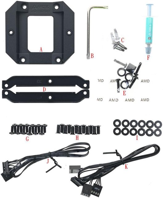 連接線(J)、獨立控制水冷頭連接線(K)
