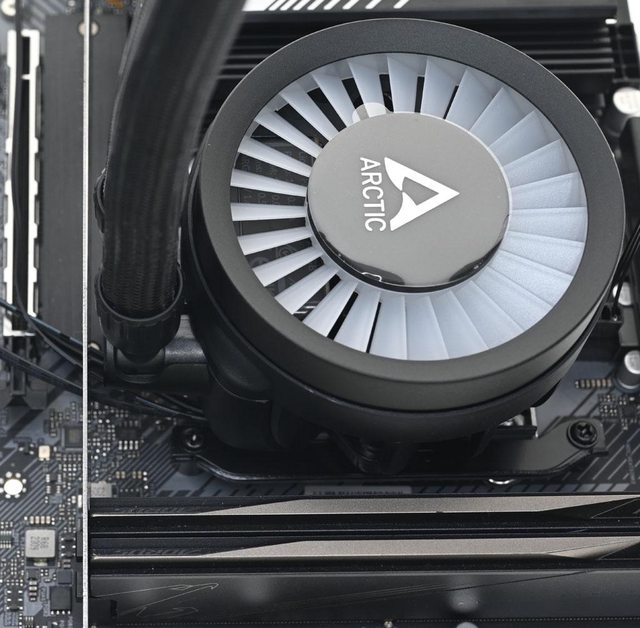 ●隨附3個ARCTIC P14 PWM A-RGB發光風扇,最高轉速1900RPM,採高靜壓扇葉設計,可讓