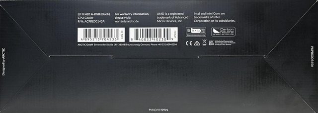 ▼外盒底部有Designed by ARCTIC條碼、保固資訊說明網址、認證標誌、產地(中國)