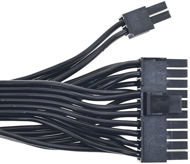 ▼1條主機板電源黑色帶狀模組化線路,提供1個ATX 20+4P接頭,16/18AWG線路長度59公