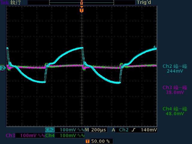 ○輸出無負載時12V無明顯漣波,輸出12V/3A時12V開始出現小振幅低頻漣波,輸出