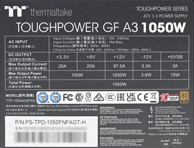 標題[開箱] thermaltake TOUGHPOWER GF A3 1050W