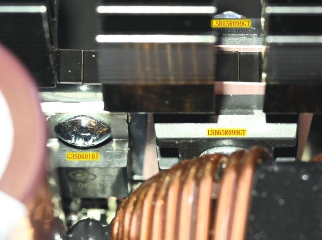 MOSFET/APFC DIODE(下圖)的紅外線熱影像圖(附註:安裝位置環境溫度會影響測試結果)