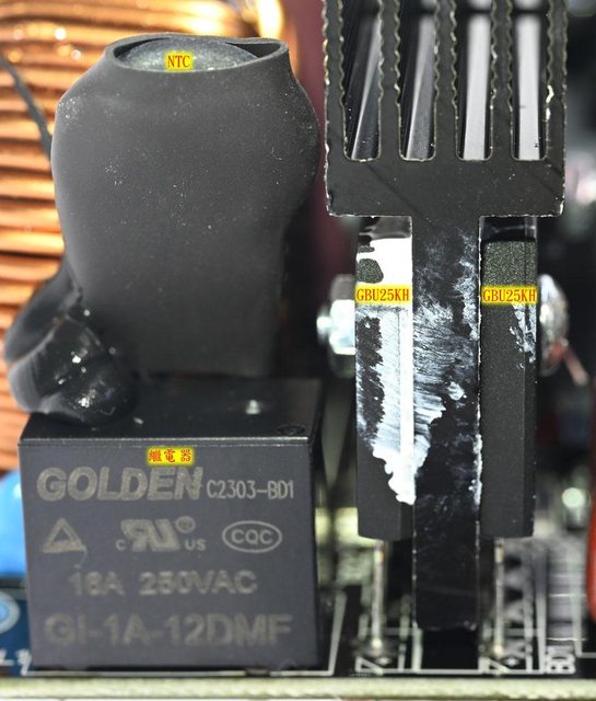 ○磁芯、保險絲及突波吸收器有包覆套管,交流輸入插座、總開關及風扇模式開關的焊點