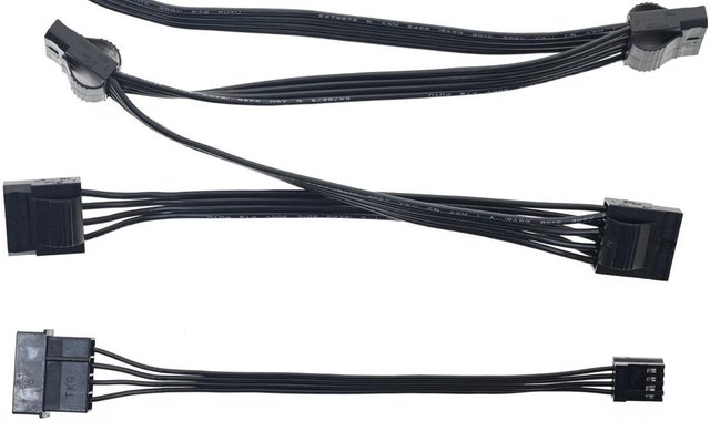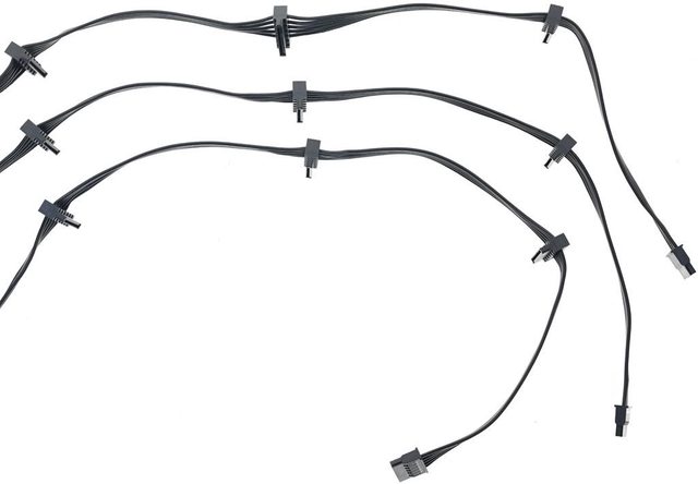 ▼3條SATA黑色帶狀模組化線路,提供9個直角SATA接頭及3個直式SATA接頭,至第一個接