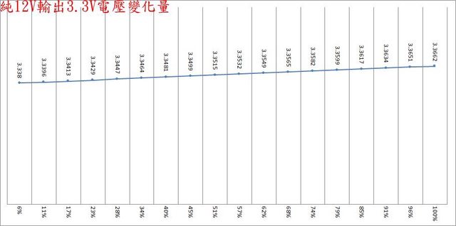 ○偏載測試,12V維持空載,測試3.3V滿載、5V滿載、3.3V/5V滿載的3.3V/5V/12V電壓變