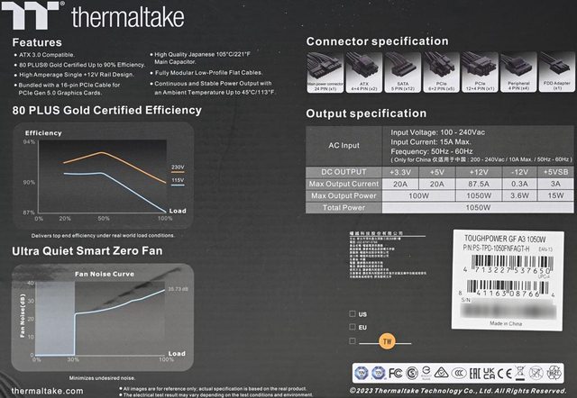 thermaltake TOUGHPOWER GF A3 ATX 3.0 1050W特色:
