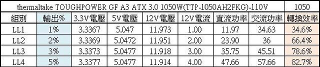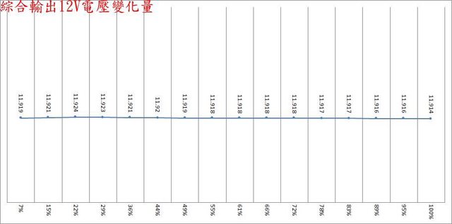 12V/13A時有最大12V漣波。於綜合全負載輸出下12V/5V/3.3V各路低頻漣波分別為
