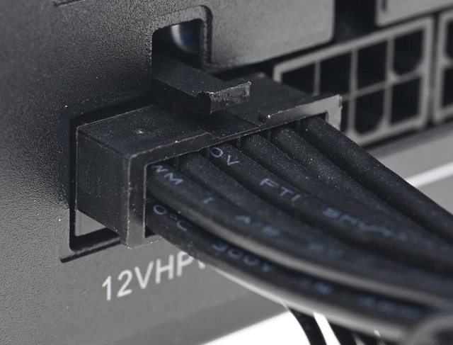 ▼12VHPWR模組化線路插頭連接處近照