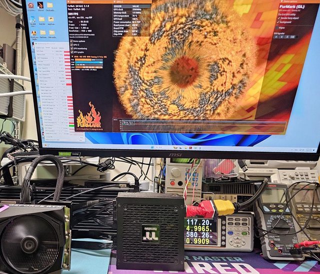 ▼用隨附的12VHPWR模組化線材連接MSI GEFORCE RTX 4090 GAMING X TRIO進行測試