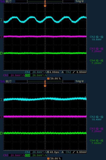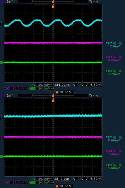 19.6mV/7.2mV/7.2mV,高頻漣波分別為10.4mV/7.2mV/7.6mV