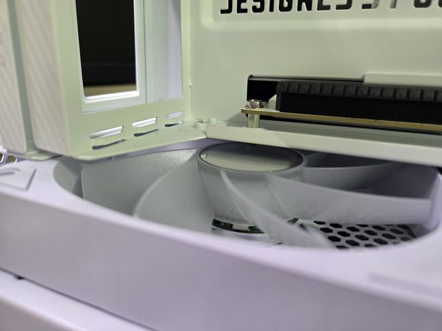 顯卡直立架與風扇間剛剛好,再壓迫可能就要改1215風扇了