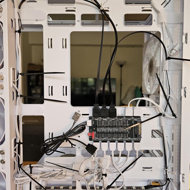 整體剩下一條水泵電源線藏不了,姑且拿直立顯卡來遮