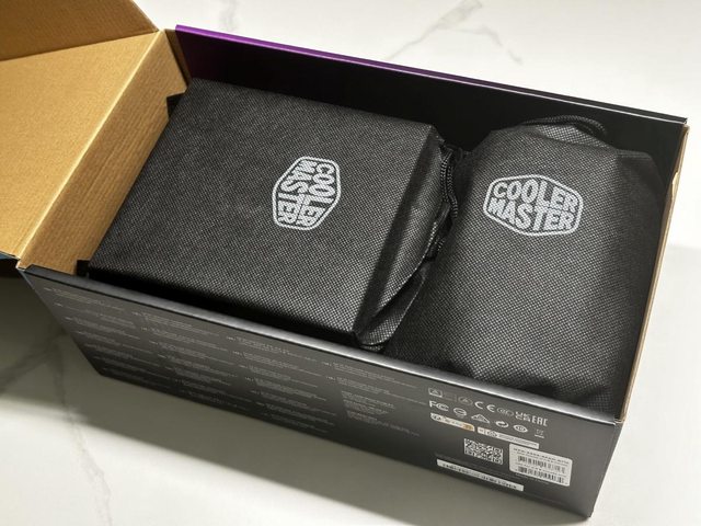 繼續看內部,線材及電源本體皆以不織布袋包覆,上方有酷碼LOGO。