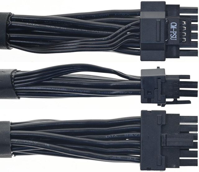 ▼2條處理器電源黑色帶狀模組化線路,提供1個EPS 8P接頭及1個EPS 4+4P接頭,18AWG線