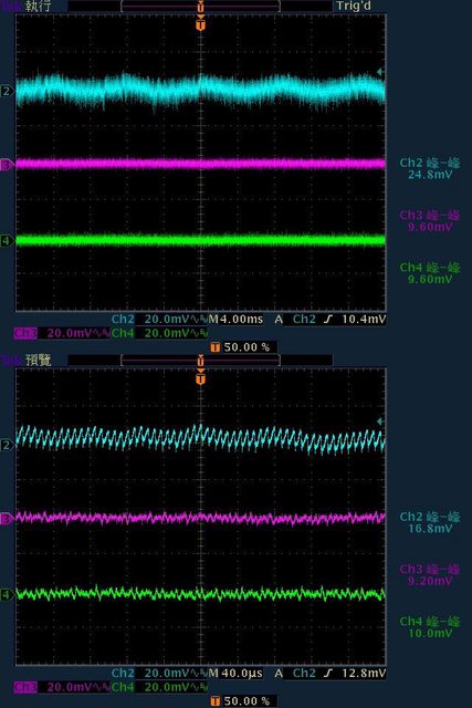 24.8mV/9.6mV/9.6mV,高頻漣波分別為16.8mV/9.2mV/10mV