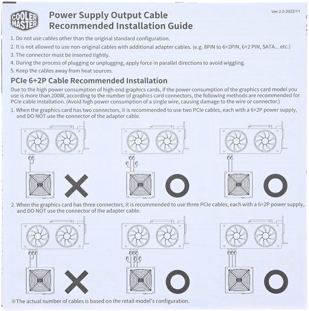 ▼電源輸出線組建議安裝方式說明書的正面有PCIe 6+2P建議連接方式