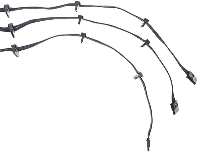 ▼3條SATA黑色帶狀模組化線路,提供9個直角SATA接頭及3個直式SATA接頭,至第一個接