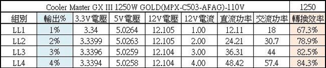 12V漣波。於綜合全負載輸出下12V/5V/3.3V各路低頻漣波分別為24.8mV/9.6mV/9.6mV,於
