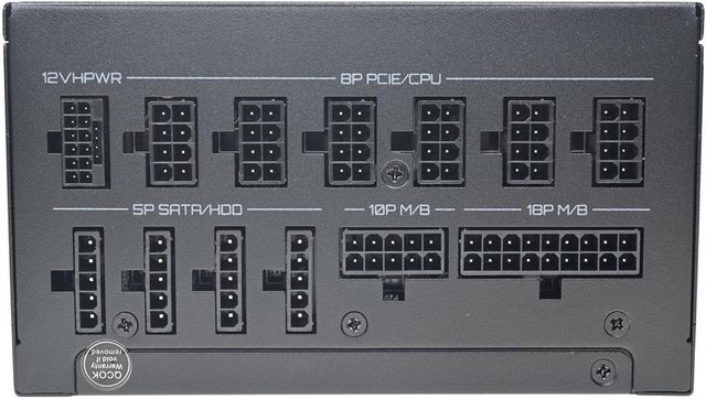 個ATX 24P、1個EPS 8P、1個EPS 4+4P、1個12VHPWR、3個PCIE 6+2P、12個SATA(9個直角