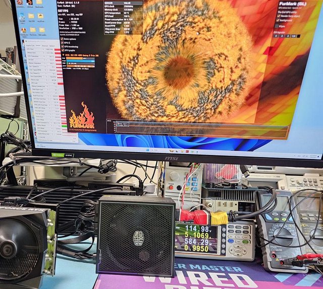 ▼用隨附的12VHPWR模組化線材連接MSI GEFORCE RTX 4090 GAMING X TRIO進行測試
