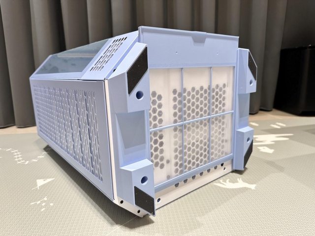 上方預裝兩個14cm的CT140排風扇,頂蓋為塑膠材質,內部設有白色尼龍濾網。
