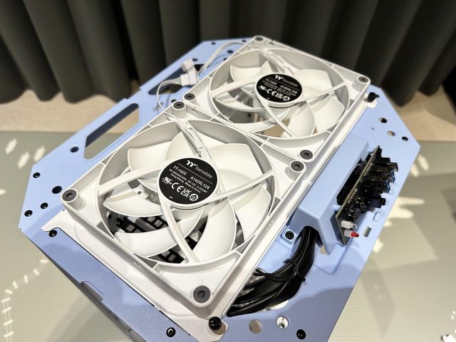 頂部預裝兩顆無光的CT140風扇,預設向上排風,使用獨立安裝支架。因為下方是主機板