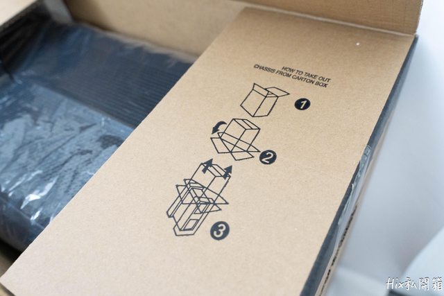甫開箱時可以看到箱子的耳朵上面印有安全取出機殼的圖解