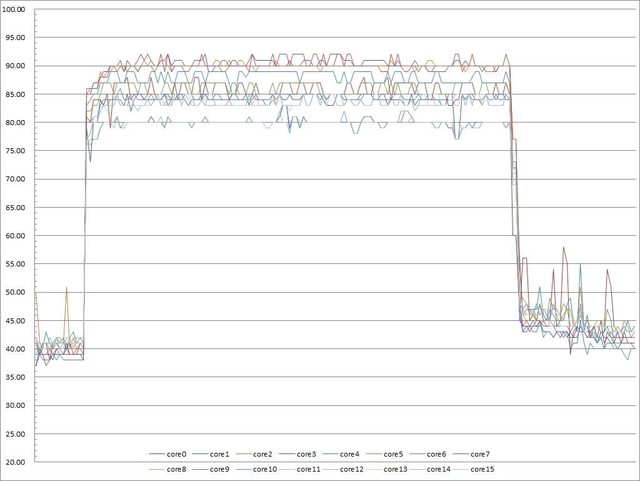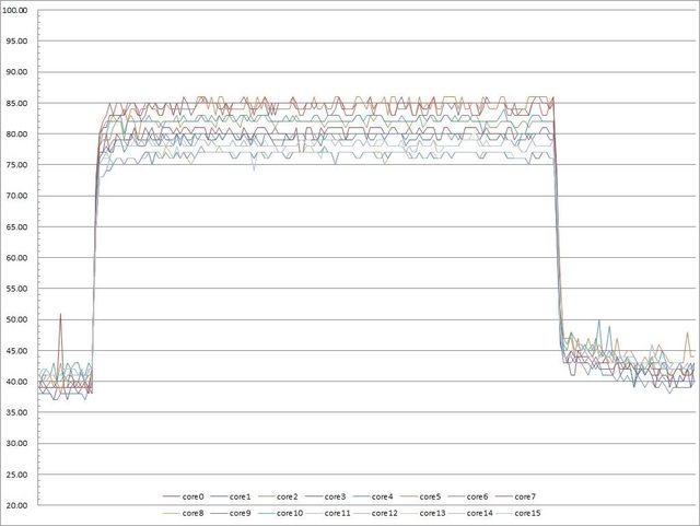 ▼功耗限制240W下高負載30分鐘CORE TEMP溫度記錄圖