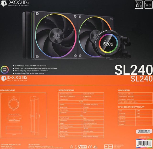 ID-COOLING SL240一體式水冷散熱器支援Intel LGA1700/1200/115x/20xx及AMD AM5/AM4