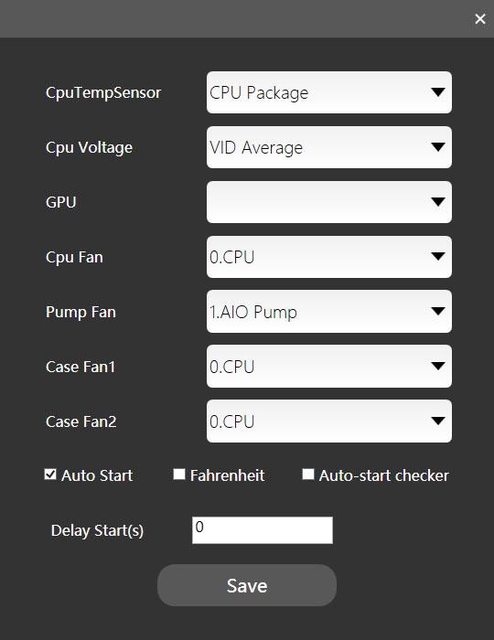 溫度、自動檢查更新、啟動延遲時間。設定完成後按下Save儲存