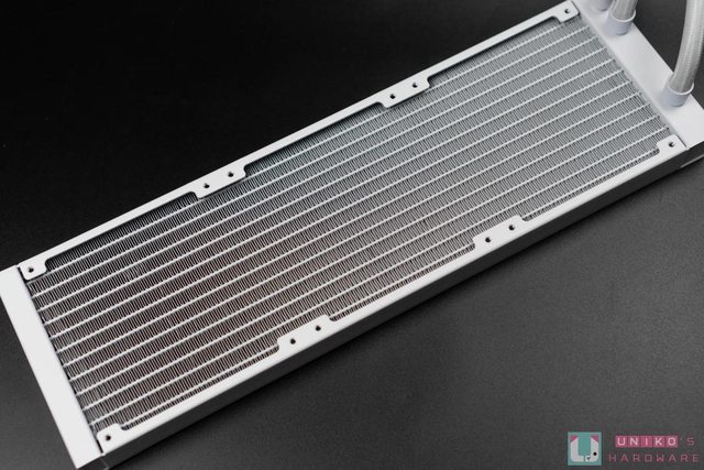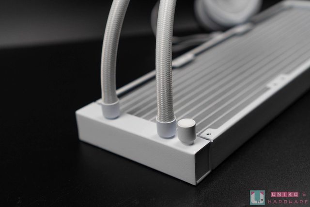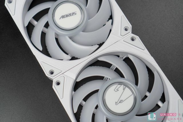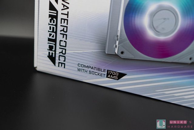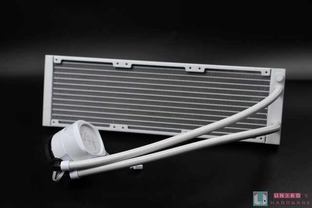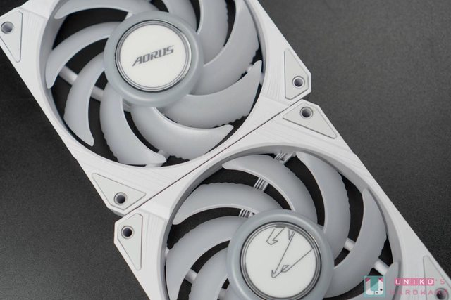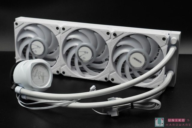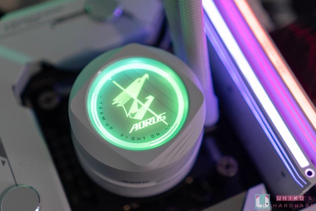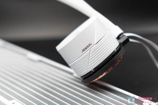 AORUS WATERFORCE II 360 ICE 本體,白色的外型配色相當適合搭配白色系主機,質感簡約