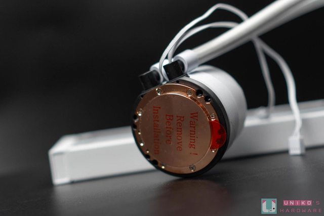 ,冷頭底部為銅底直觸 CPU,安裝前記得將保護膜撕下。