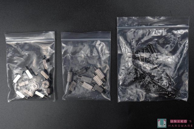 螺絲部分則是有簡單做個別包裝,撇除風扇固定用螺絲和墊片不提,其他包含 Intel 使用