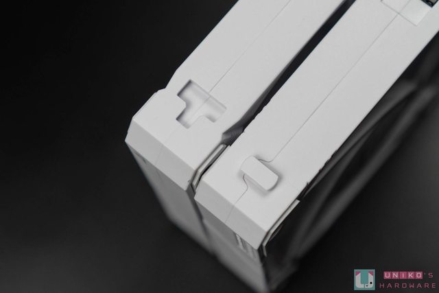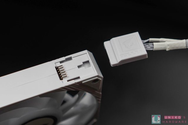 安裝時只需將風扇兩兩對齊插入,然後各自上下推入即可滑入卡扣,進而達到風扇供電串接