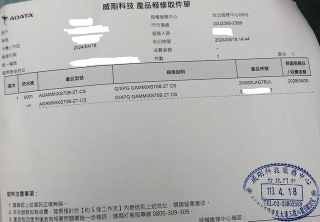 工作人員只問報修單號,收下SSD後旁邊箱子拉開直接給我一盒新品/單據