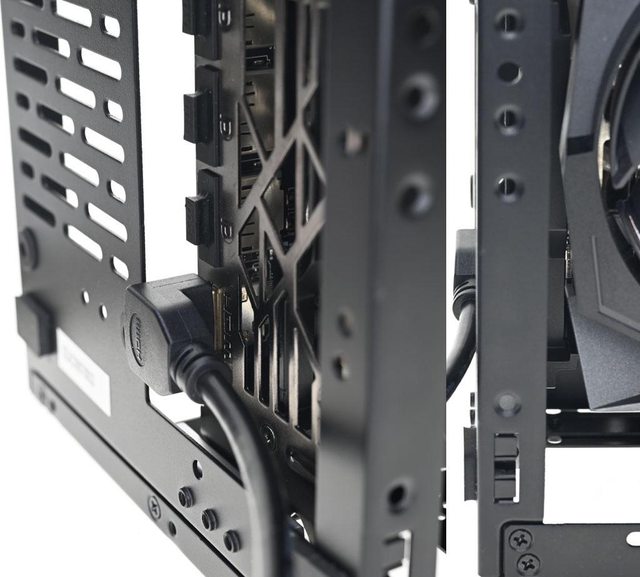 將隨附直角接頭HDMI線插上後再安裝顯示卡到機殼內