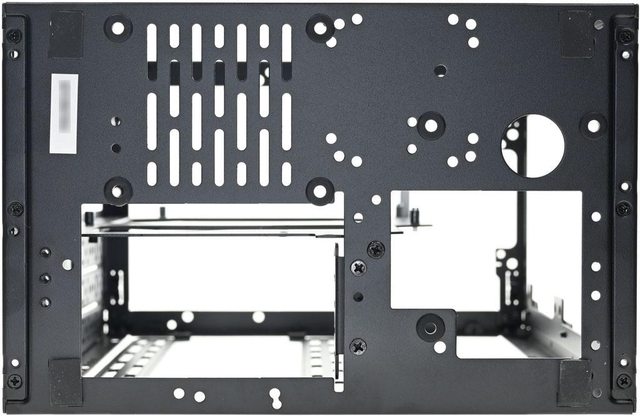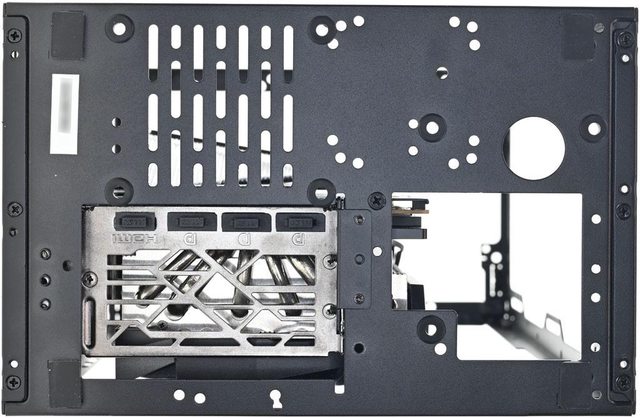 ▼拆除網孔板後的機殼前方(左)與後方(右)圖,內部預設配置為3槽模式