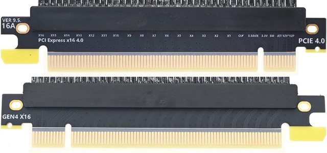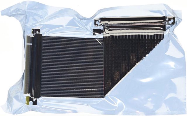 ▼需要依照安裝配置選購合適長度及接頭種類的PCIe延長線。延長線包裝盒上有商標、條