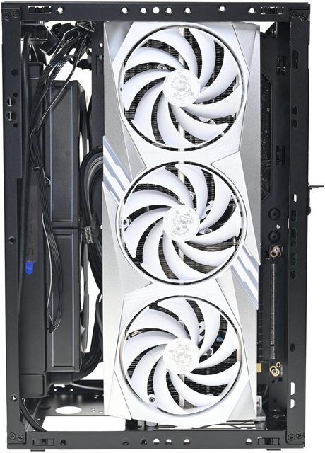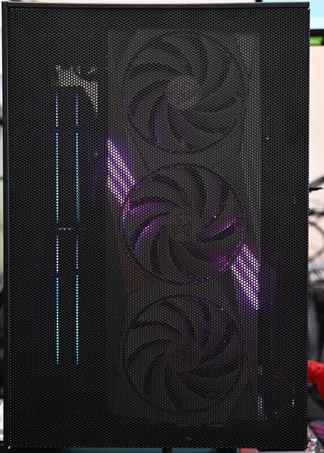 。搭配尺寸較大的顯示卡時,前方風扇及水冷排空間有限,只能選擇將前方風扇以抽風方