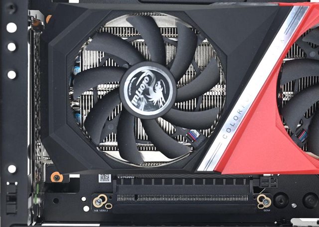 置下部分輸出埠會被遮擋,圖中的顯示卡HDMI輸出埠被遮擋,只露出3個DP輸出埠,需先