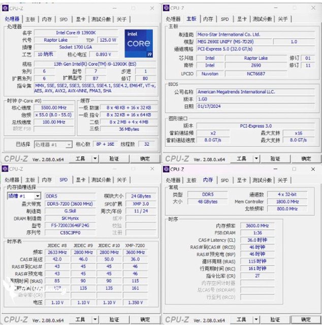 同樣由 CPU-Z 來檢視 Intel Core i9 13900K 測試平台。