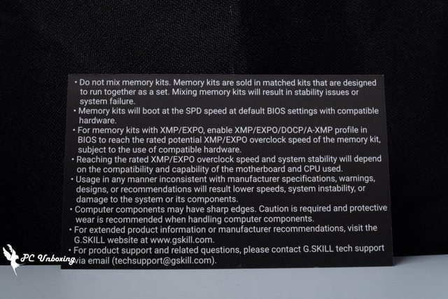 就如同 G.SKILL 所附上的小卡所寫,上面所提到的這些體質因素都會影響記憶體使用穩定