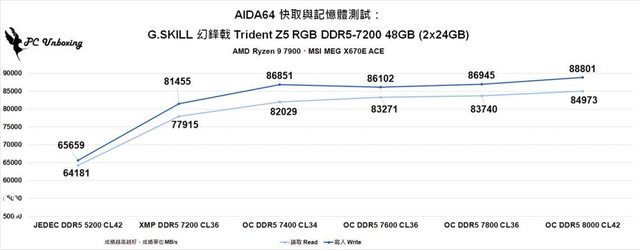 首先使用支援 DDR5 記憶體的 AMD Ryzen 7000 平台,看一下這組記憶體在 AMD 平台表現