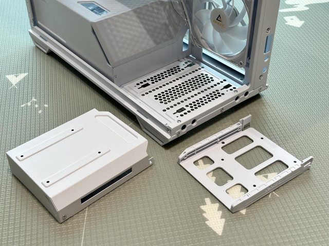 硬碟架附有個人覺得有些雞肋的托盤...如果無安裝硬碟需求,也可將硬碟架拆除改成