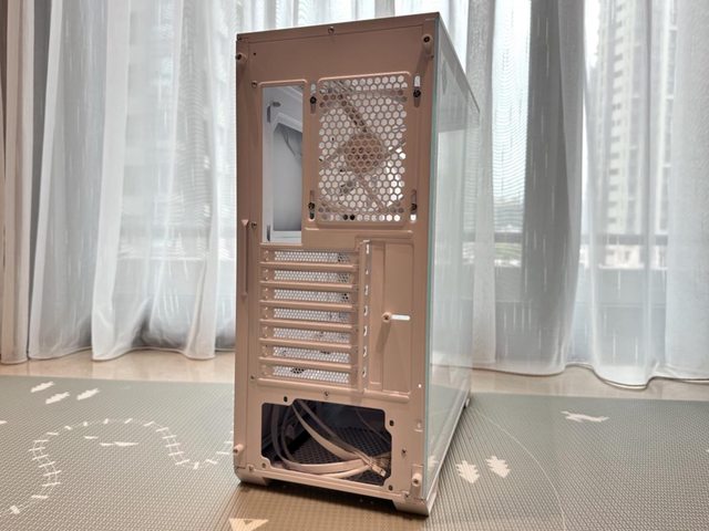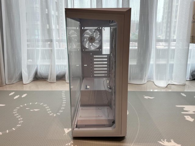 完成所有裝機後蓋上玻璃側板,可惜用M-ATX主機板裝機還是有些空虛。