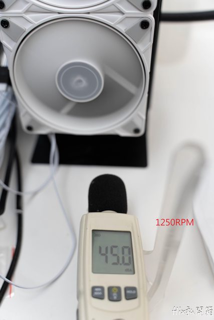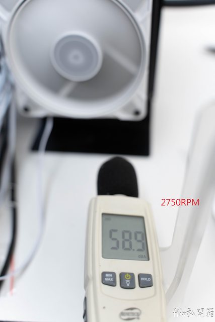 但以上測試只是為了要證明這風扇效能足以打穿厚水冷排將熱度給帶走