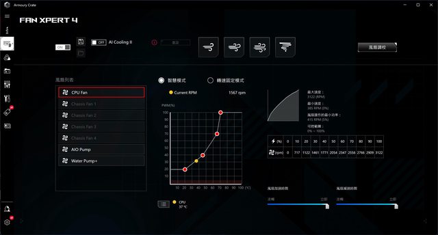 首先進ASUS 的AC軟體內看看轉速曲線圖