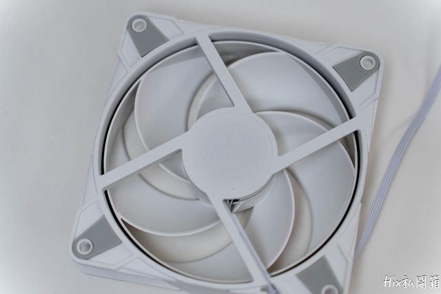風扇本體為全白色帶有灰色貼紙的設計